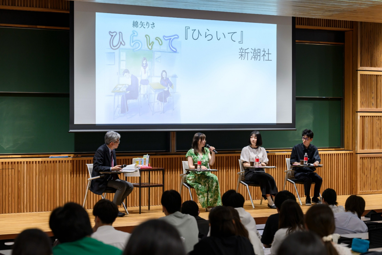第1部では、綿矢氏の創作活動について、副学長の安藤徹教授(文学部)と対談。第2部は文学研究科の大学院生も交えてのトークセッションが行われ、書き手からの「読書」の魅力も教えていただきました。