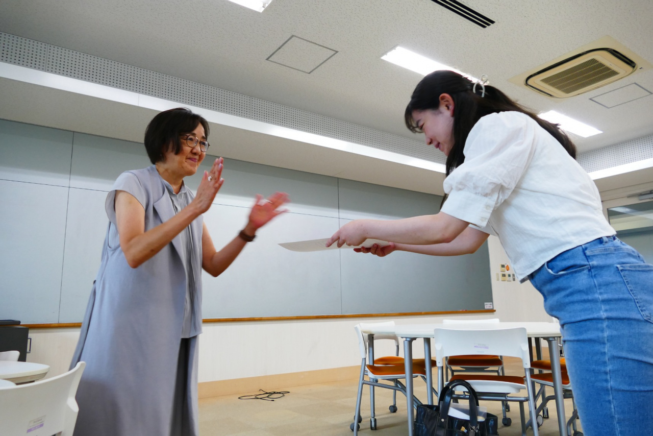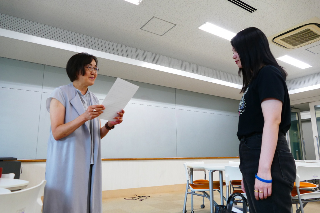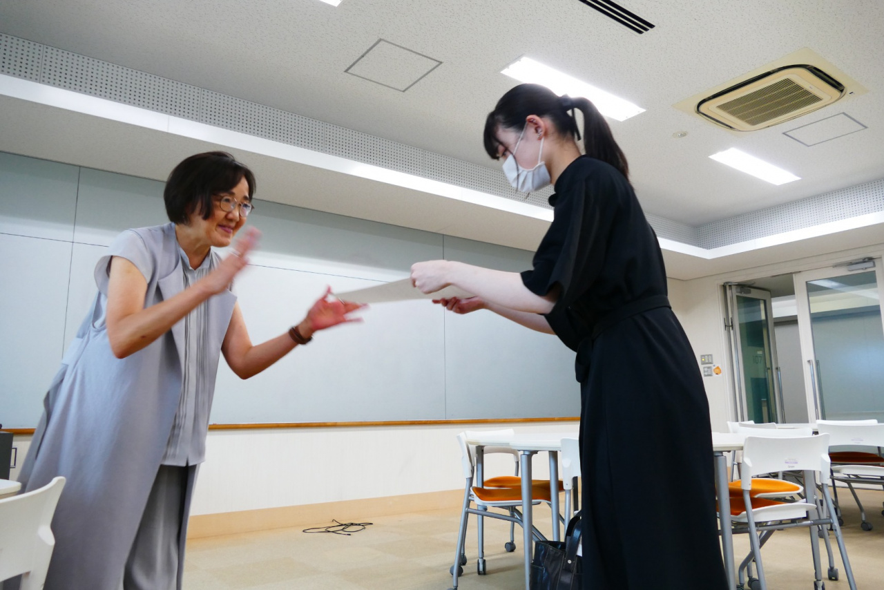 表彰式では、黒川雅代子・短期大学部長から表彰状と副賞が手渡されました。