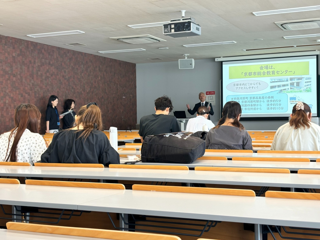 この度、京都市教育委員会の担当者にお越しいただき、第19期生募集の説明会を、深草学舎(6月27日)、大宮学舎(7月2日)、瀬田学舎(7月9日)の3学舎にて実施しました。
