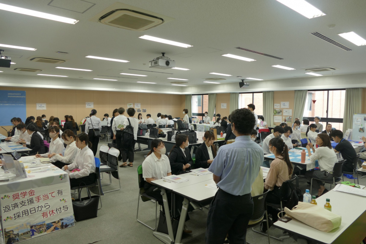 7月3日(水)に今年度も学生のキャリア支援の一環として、京都府福祉人材サポートセンターのご協力のもと「福祉職場就職フェア」を開催しました。社会福祉現場実習のための福祉職場の情報収集や、その理解を深めることから職業の選択についての幅を広げることをねらいとしています。