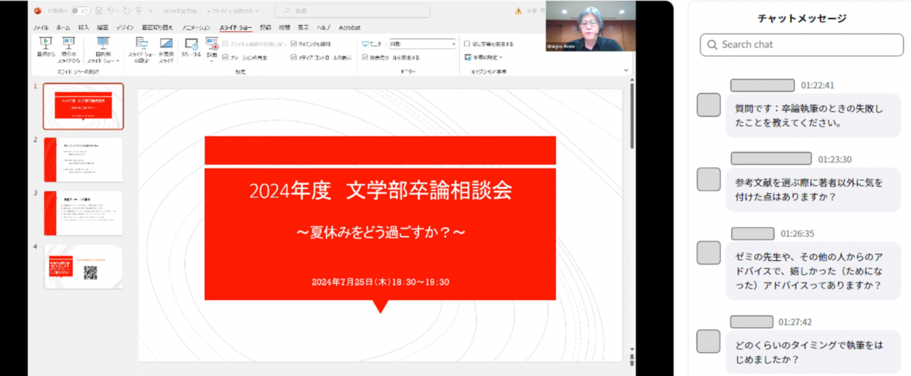 2024年度「卒論相談会~夏休みをどう過ごすか~」の開催・動画公開【文学部】