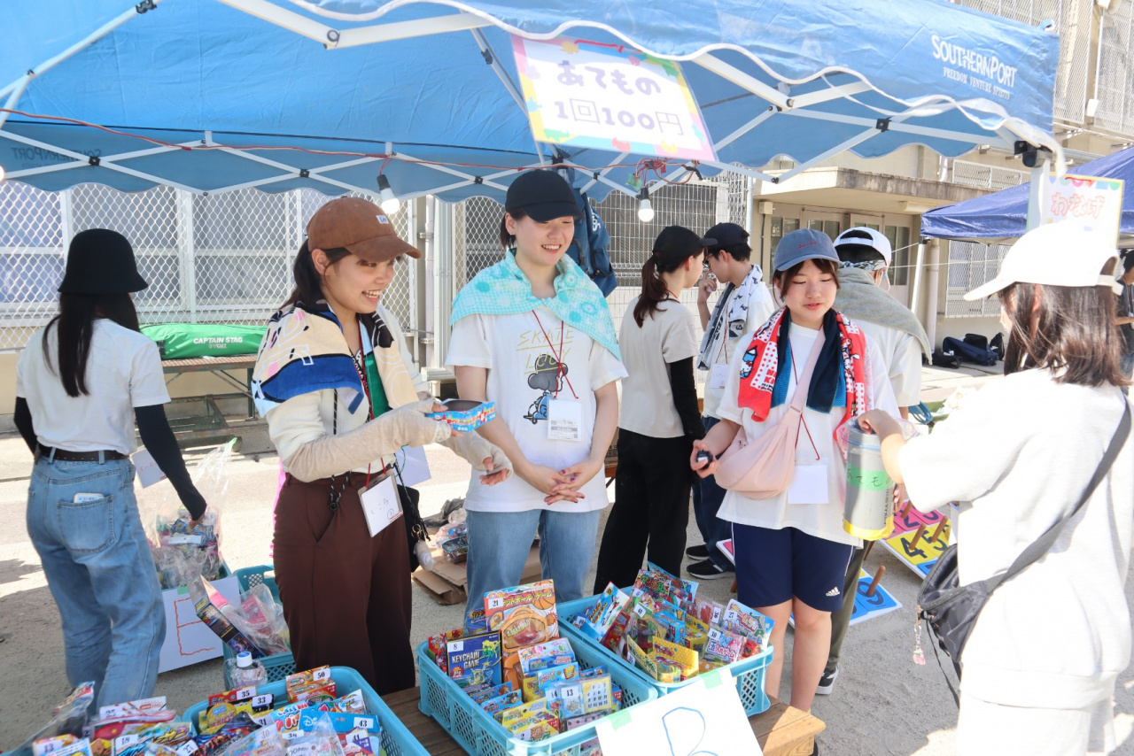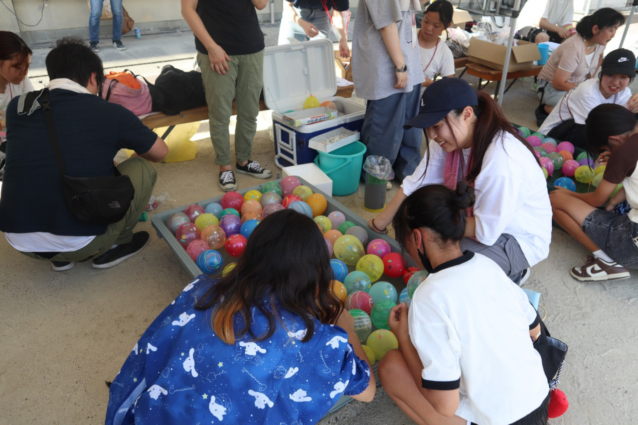 深草キャンパスの隣にある砂川小学校で開催される『砂川夏まつり』にボランティア体験として参加させていただきました。