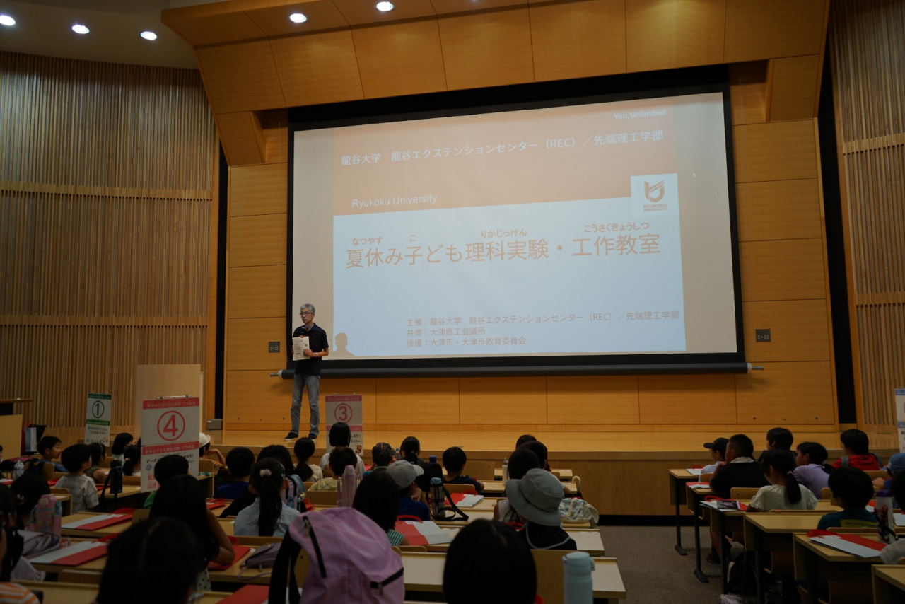 本講座は、小学生を対象に“科学のおもしろさ”や“ものづくりの楽しさ”を知ってもらうこと、龍谷大学(先端理工学部)を身近に感じてもらうことを目的とし、龍谷エクステンションセンター(REC)と先端理工学部が、大津商工会議所(共催)、大津市(後援)と連携して開催しています。