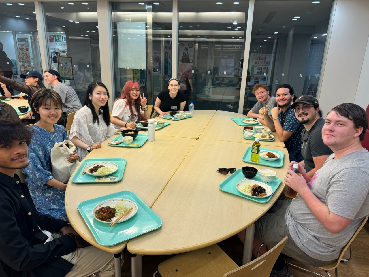 プログラム初日は、龍谷大学グローバル教育推進センター前のマルチリンガルスタジオにて、自己紹介を通じて交流を深めたのち、学内の学生食堂で昼食を取りました。