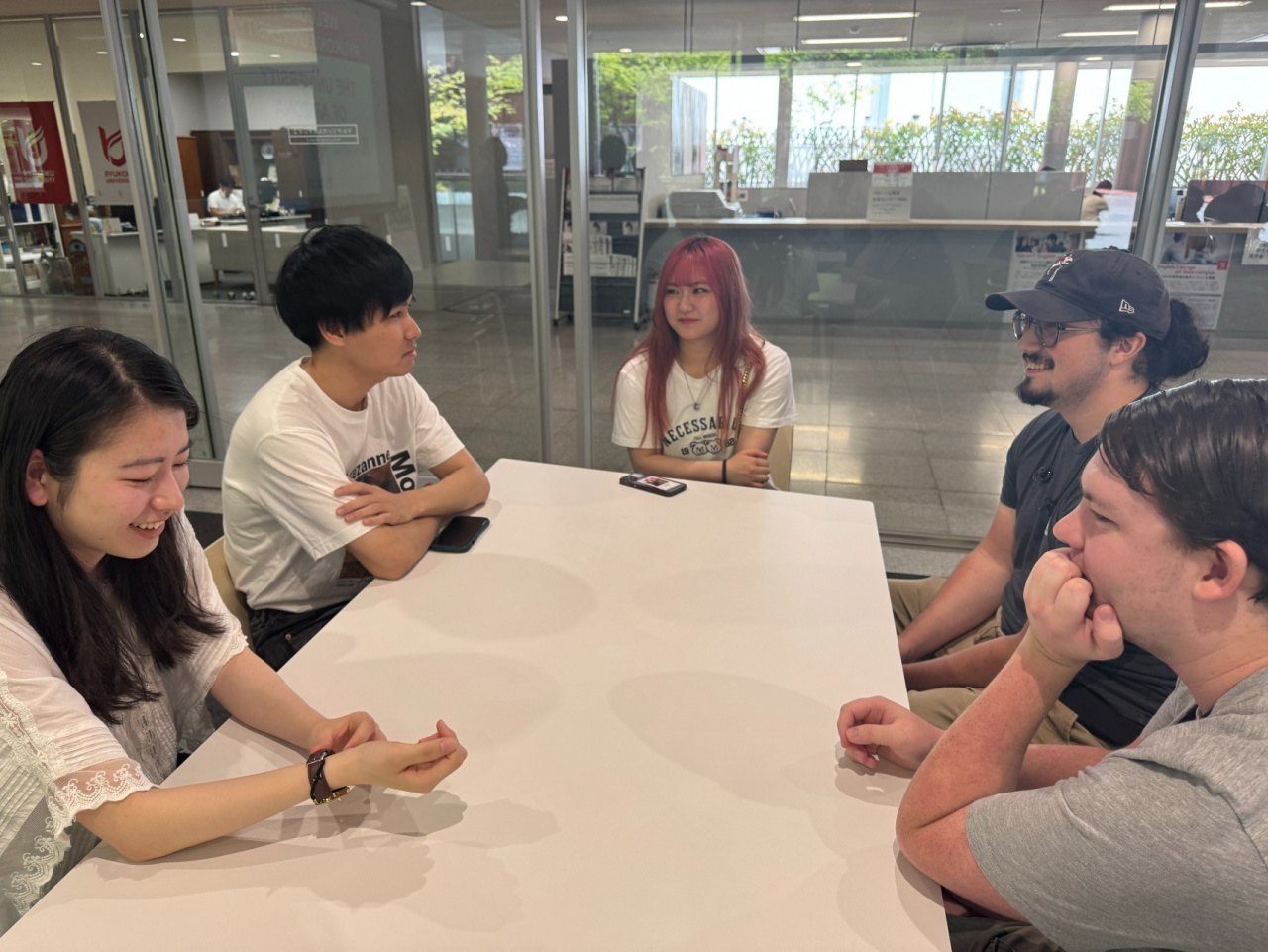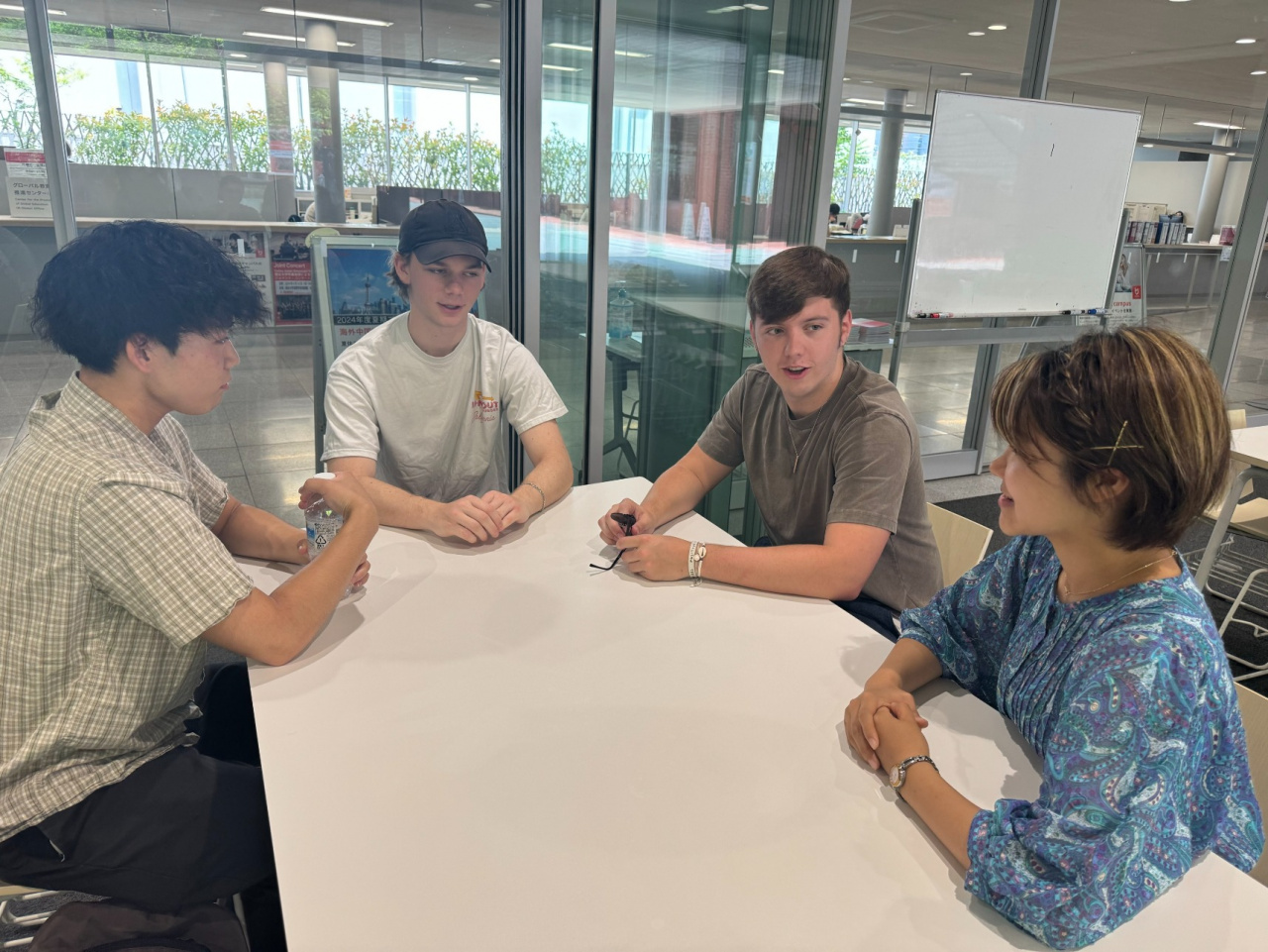 学生たちは、お互いに自己紹介をした後、参加者全員が相互に交流し、互いの文化に対する視点や興味・関心について意見交換をしました。その後、食堂で一緒に昼食を食べました。