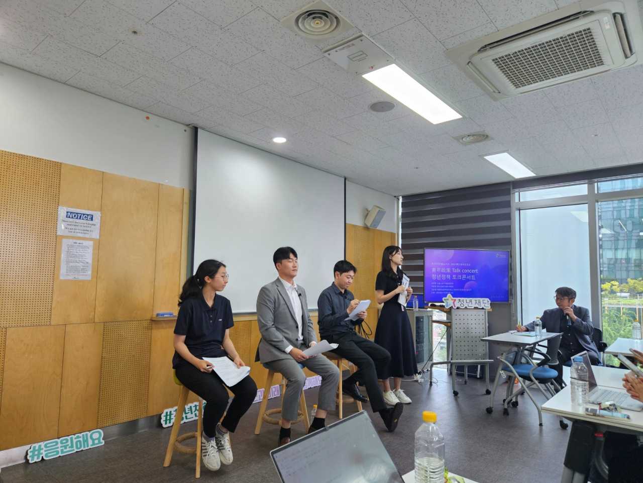 まず最初に、青年財団の青年サポーターの皆さんと交流の時間を設けました。トークセッションに登壇した話者と司会はすべて若者で明るい雰囲気です。政府に対して政策提案をしてきた立場から、具体的な経験を教えてもらいました。