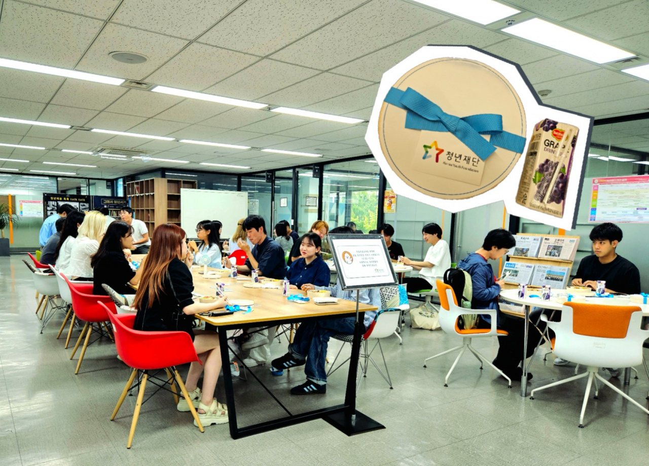 トークセッションが終わった後、青年財団の方からお弁当をいただき、午後から交流する青年サポーターの方とお昼ご飯を一緒に食べました。日韓の学生同士で交流を深め(自分の名前の由来など)、仲睦まじい雰囲気で食事をしたため、普段以上にご飯をいただくことができました。感謝いたします。