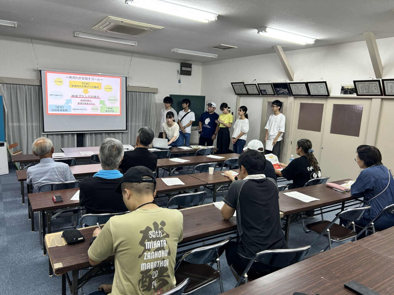 そのあと活動フィールドである南丹市日吉町世木地域に移動し、4月から現在までの活動の成果と課題について、世木地域振興会の皆さんに報告し、今後の活動についてミーティングを行いました。
