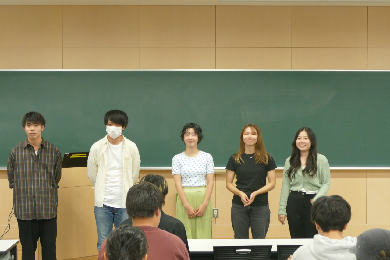 短大・編入後の学生時代の様子、進路選択をしたきっかけやその取り組み、就職活動の状況や現在の仕事のやりがいなどを報告いただき、1年生は進路や就職のイメージが広がり、今できることを考えて、これからのキャリアビジョンを考える機会となりました。