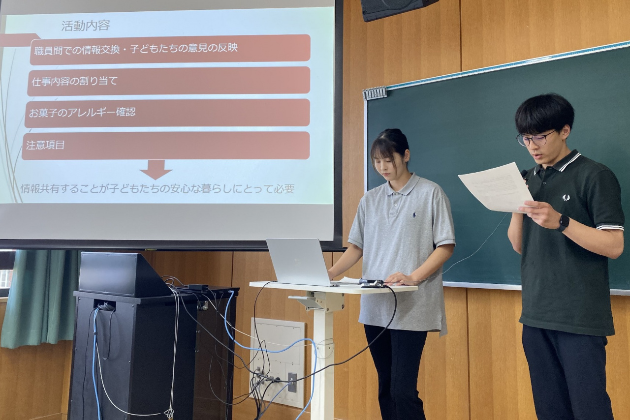 今年度実施された地域実習は4か所の社会福祉施設・事業所のプログラムで、それぞれの実習プログラムについて、実習を行った2年次生から報告がありました。