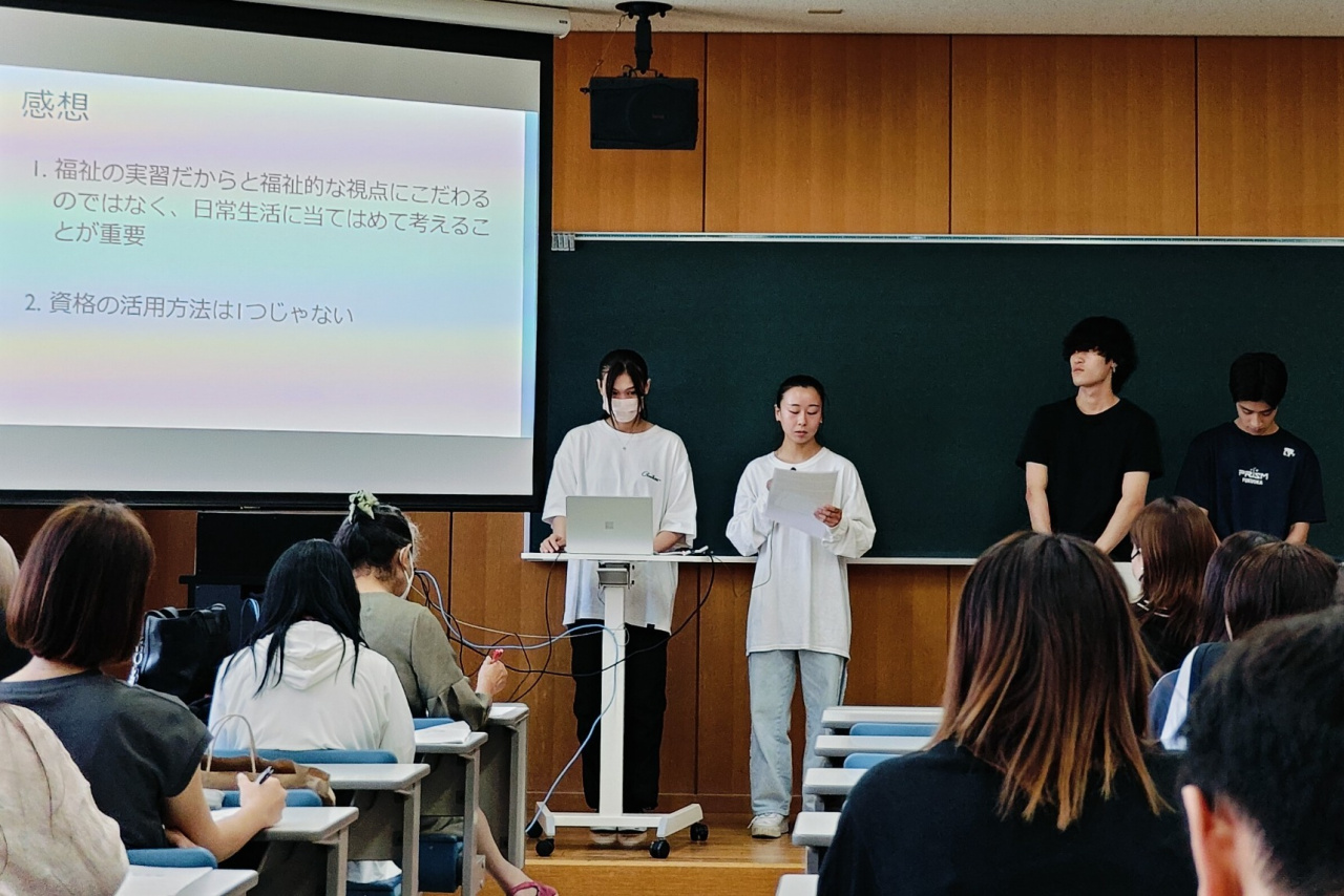 報告を行った2年次生にとっては、実習という体験学習を多角的に検証し、学びを深め視野を広げる機会となりました。「実習では主体性が大切であり、様々な経験や活動に積極的に参加する姿勢と態度が必要であり、コミュニケーションスキルを磨く日々の努力が大切」「実習記録を書くためには様々な学習を通して表現力の向上を目指すことが重要」の2点が4つのプログラムに共通した報告でした。また個別性を重視したサービス利用者へのアプローチや自立支援とは何か、利用者の社会性を育むサポートはどの様にあるべきか思考が深まったようです。