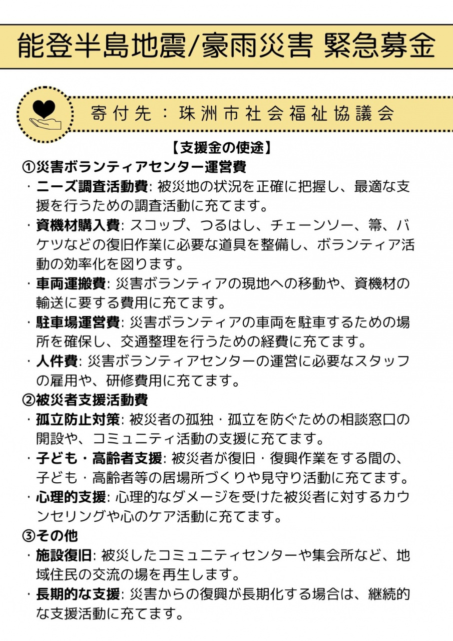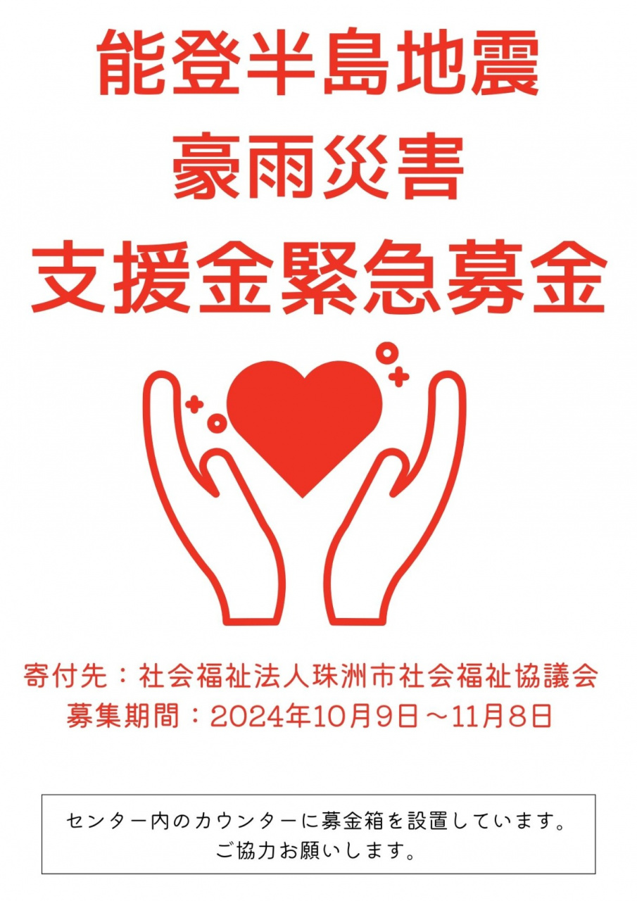 10月9日(水)17:00~の令和6年能登半島地震第3回災害支援ボランティア活動報告会より「支援金」の募金箱を設置します。