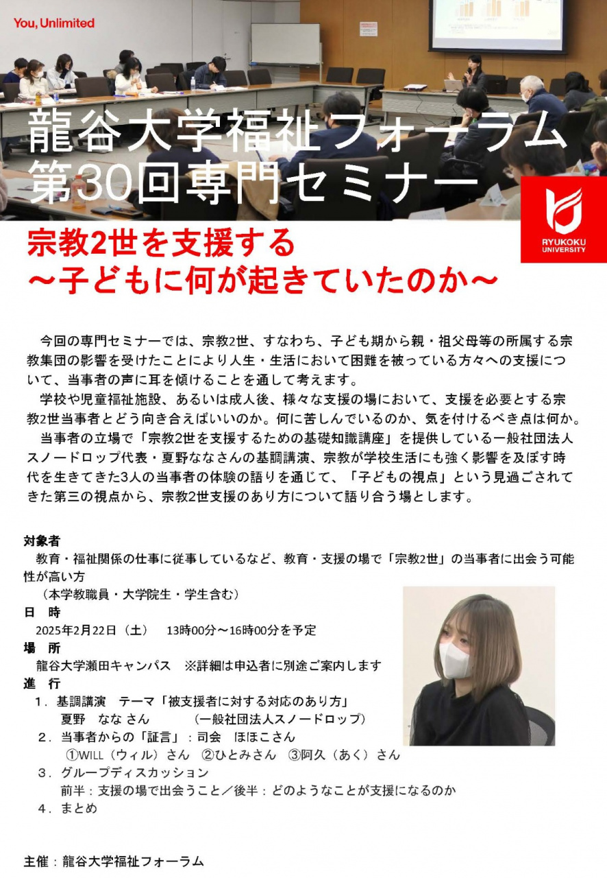 2024年度福祉フォーラムにおきまして、第29回、第30回専門セミナーを開催することとなりました。