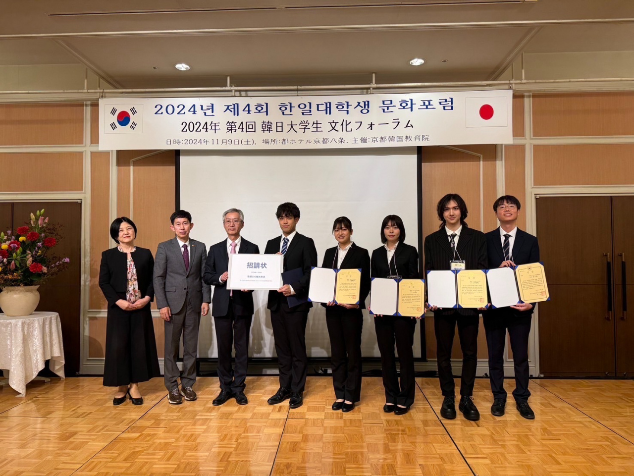 2024年11月9日(土)に都ホテル京都八条にて開催されました2024年第4回韓日大学生文化フォーラムにおいて、政策学部「政策実践・探究演習(海外)韓国PBL」(担当:安 周永 教授)の受講生が発表を行い、金賞を受賞しました。