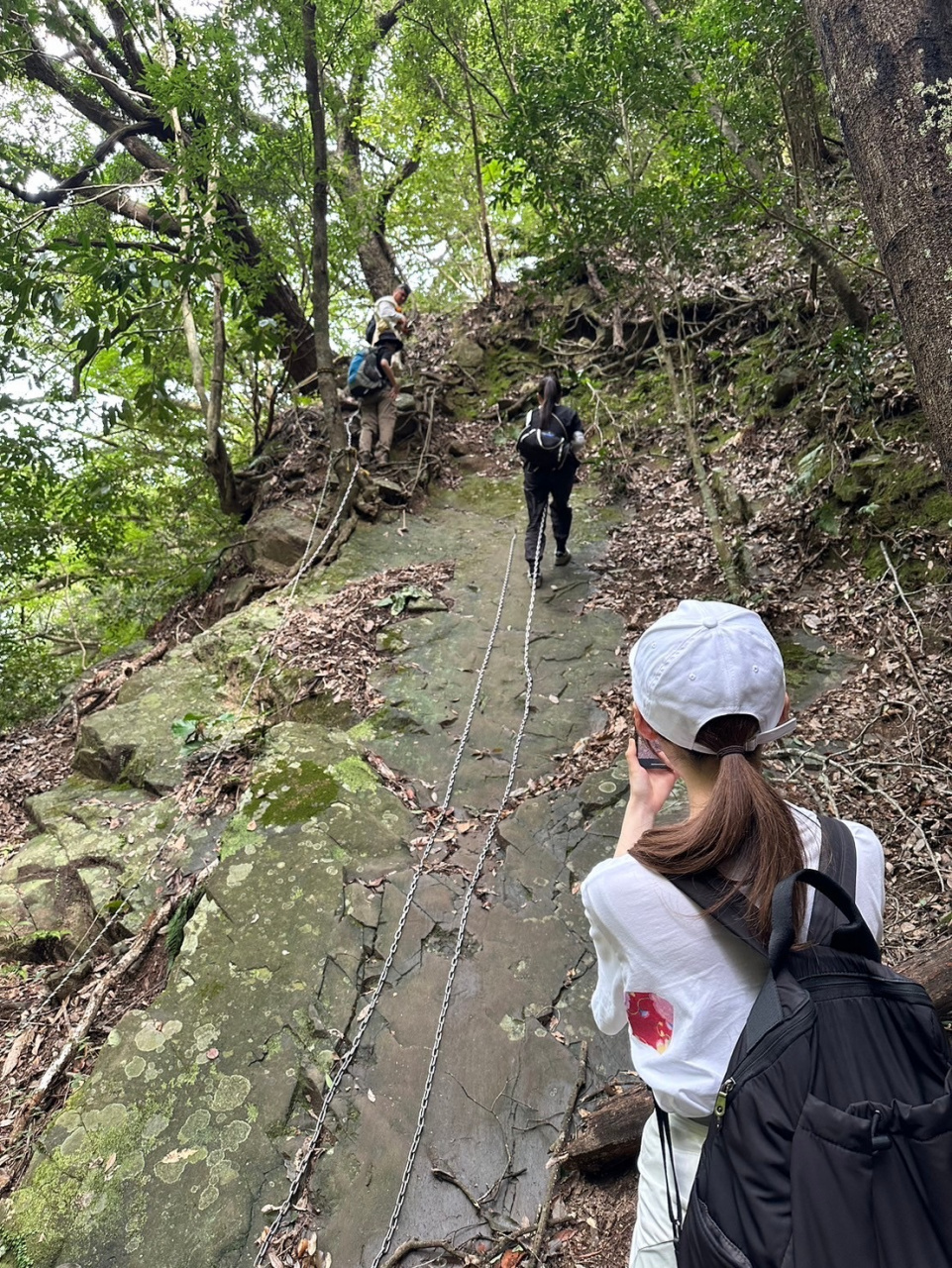 そして、岩壁をよじ登る「蟻の戸渡り」や、暗い岩のトンネルを抜けることで生まれ変わりを疑似体験する「胎内くぐり」を体験しました。