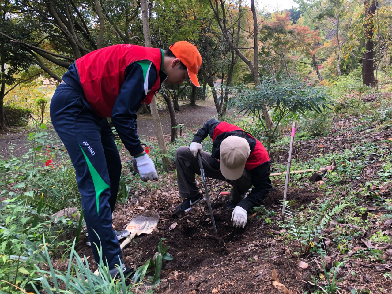 活動内容:枝垂れ桜やミツマタ等の苗木を植えるための穴掘り活動