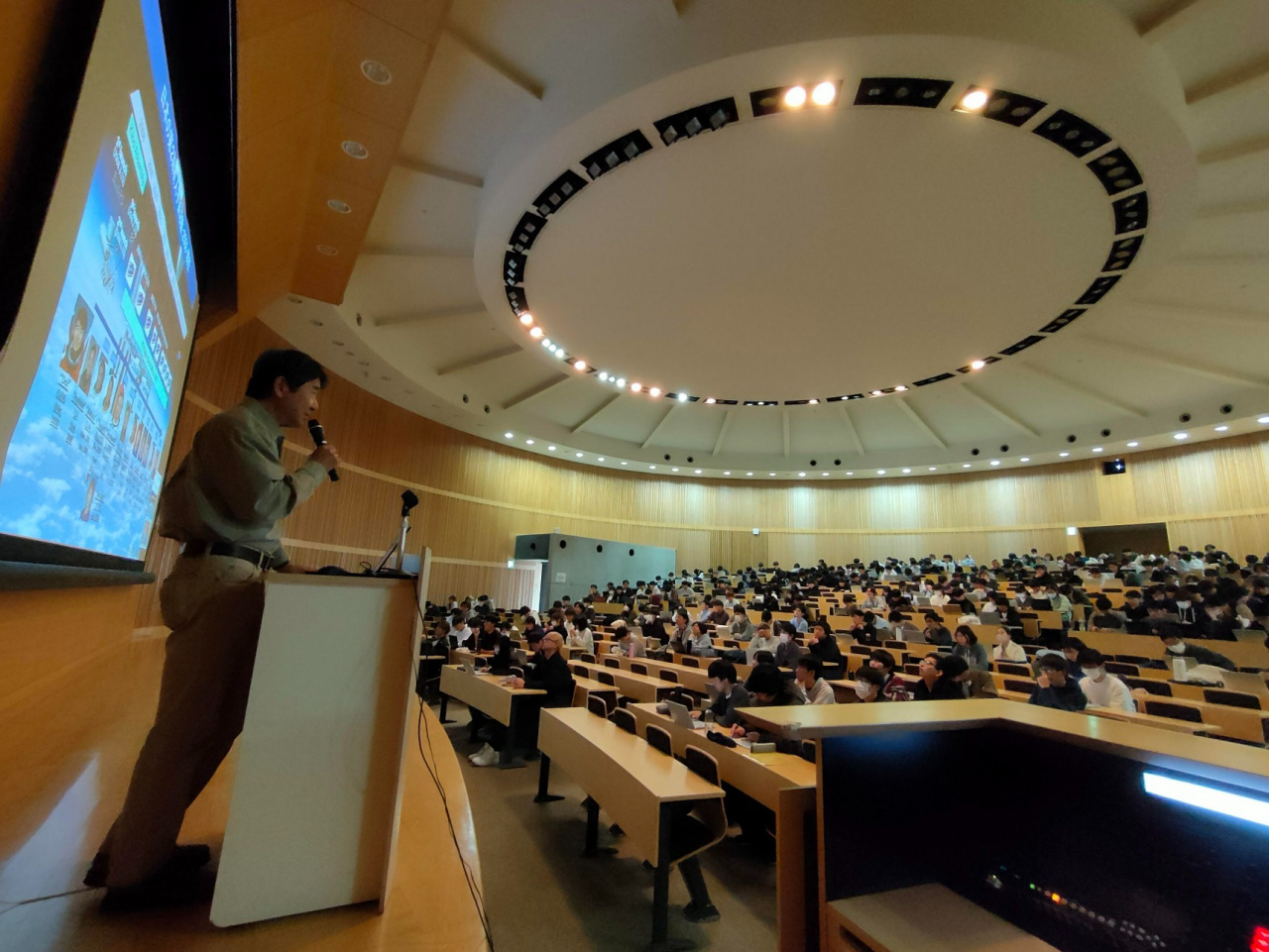 2024年11月18日(月)、先端理工学部の1年次生対象授業「理工学のすすめ」※において、宇宙飛行士であり京都大学特定教授の土井 隆雄先生をお招きし、約600名の学生に対しご講演をいただきました。