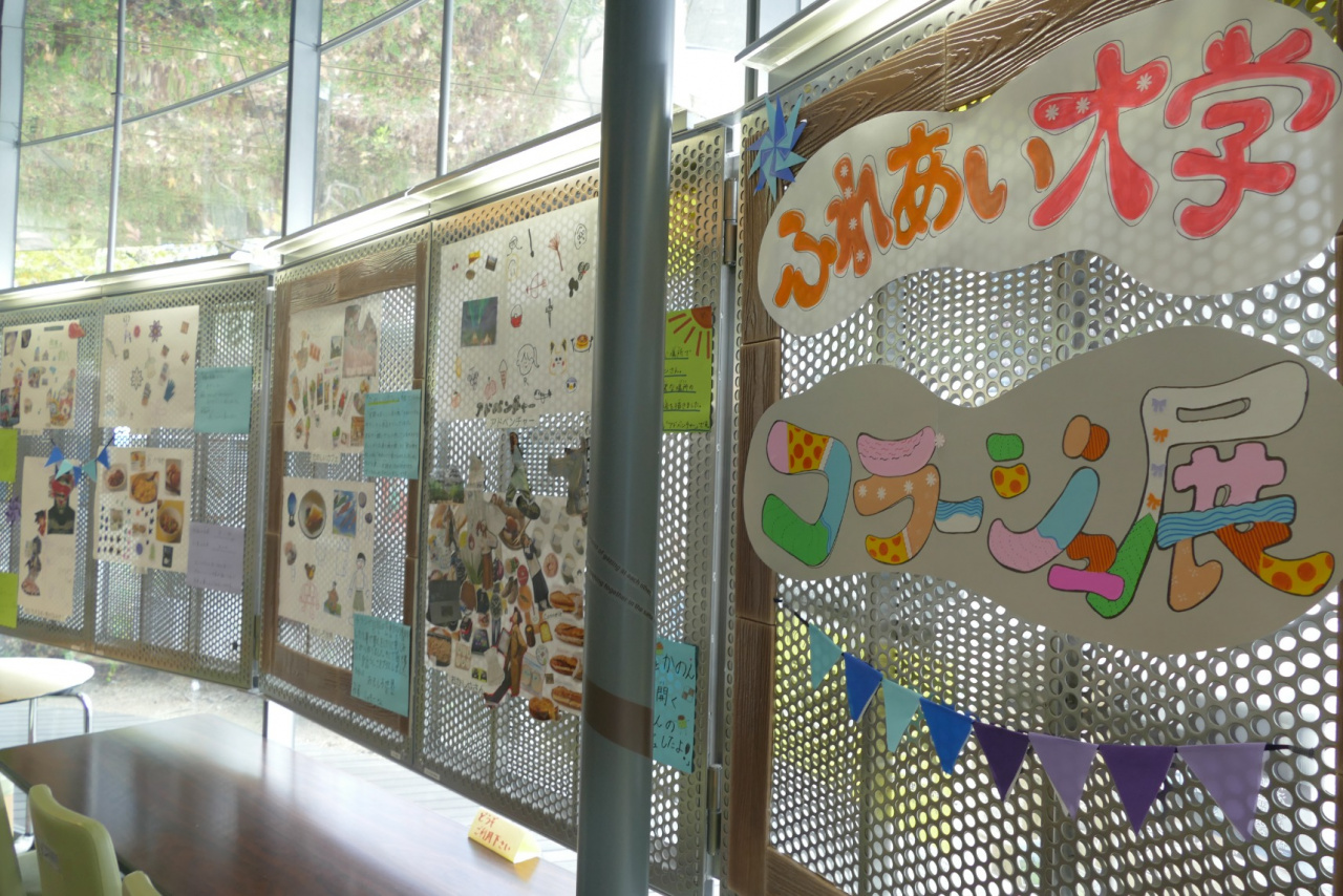 2024.11.20 【社会福祉学科】2024年度「オープンカレッジふれあい大学課程」コラージュ展が始まりました。 地域に暮らす知的障がいのある方々と学生が共に学ぶ「オープンカレッジふれあい大学課程」(ふれあい大学)の授業で作成した力作のコラージュを、カフェ樹林で展示させていただいています。学生らは、ペアのふれあい生と楽しく協働して個性的なコラージュを作成し、キャプションでその思いを説明しています。12月末日までの展示となっています。是非ご覧ください。 ふれあい大学コラージュ展の様子 ふれあい大学コラージュ展の様子