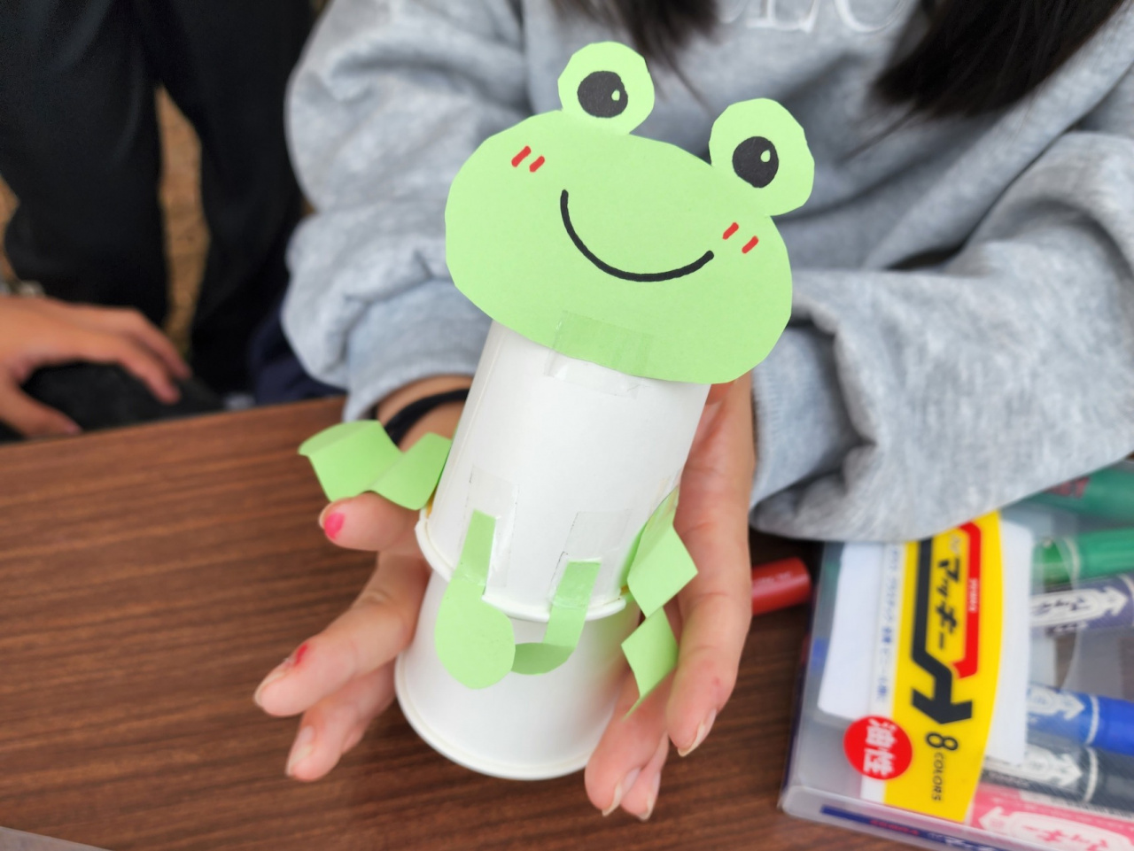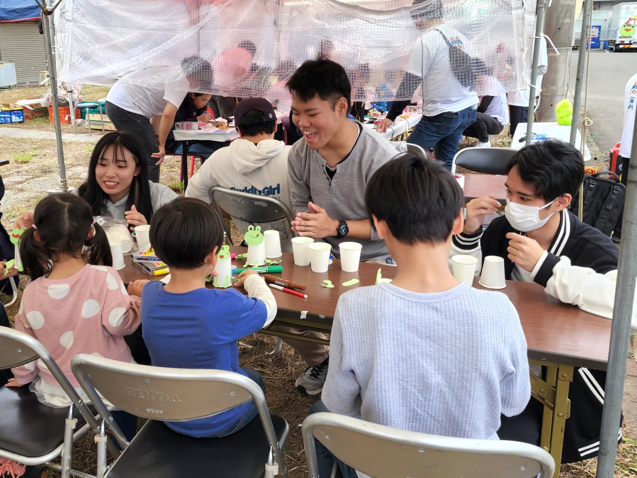 また、野外活動部は、子ども向け工作ブース「ぴょんぴょんかえるをつくろう!」を出展し、約40名の子どもたちと紙コップを使ったかえるを作りました。