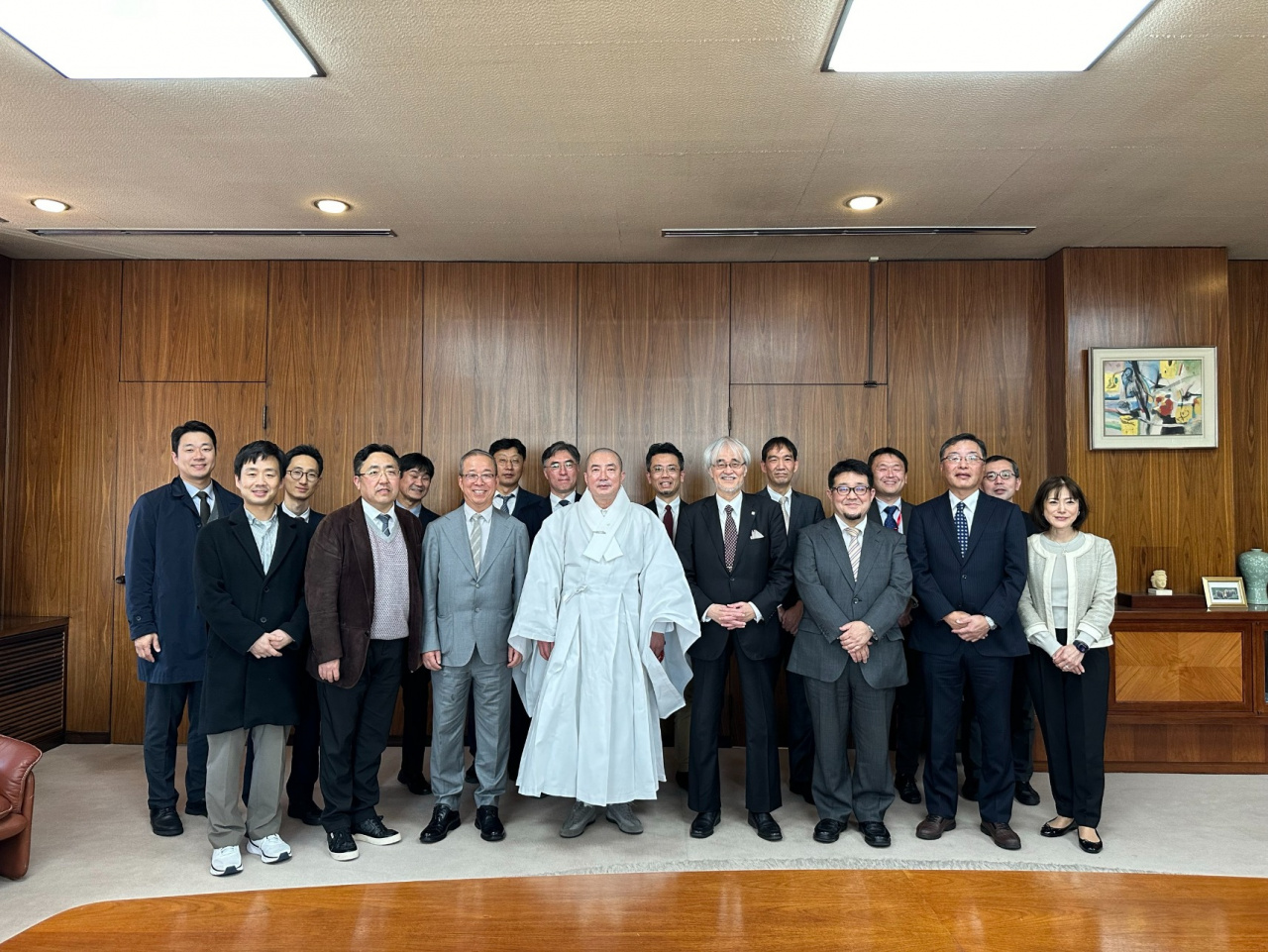 2024年11月27日(水)に、本学協定校である東国大学(韓国)の頓觀 (Don Gwan)理事長、YUN Jae Woong学長ご一行が本学を来訪され、学術交流に関する懇談を行いました。