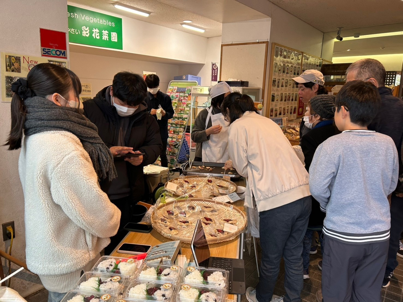 学生たちは9時30分の営業開始とともに販売を開始しました。また、同時に店舗の入り口でマルシェの看板を持ちお客さんへの呼び込みも積極的に行いました。多くの来客があり、昼過ぎにはほぼ完売することができました。
