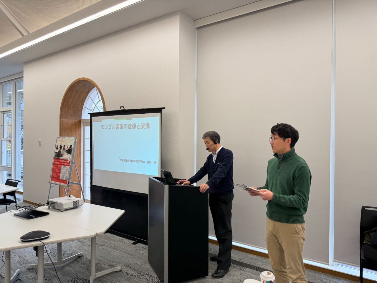 村岡先生には、モンゴル帝国の拡大の変遷や婚姻関係・宗教を利用した統治システム、考古学的調査の考察等についてお話いただき、大変興味深いお話でした。