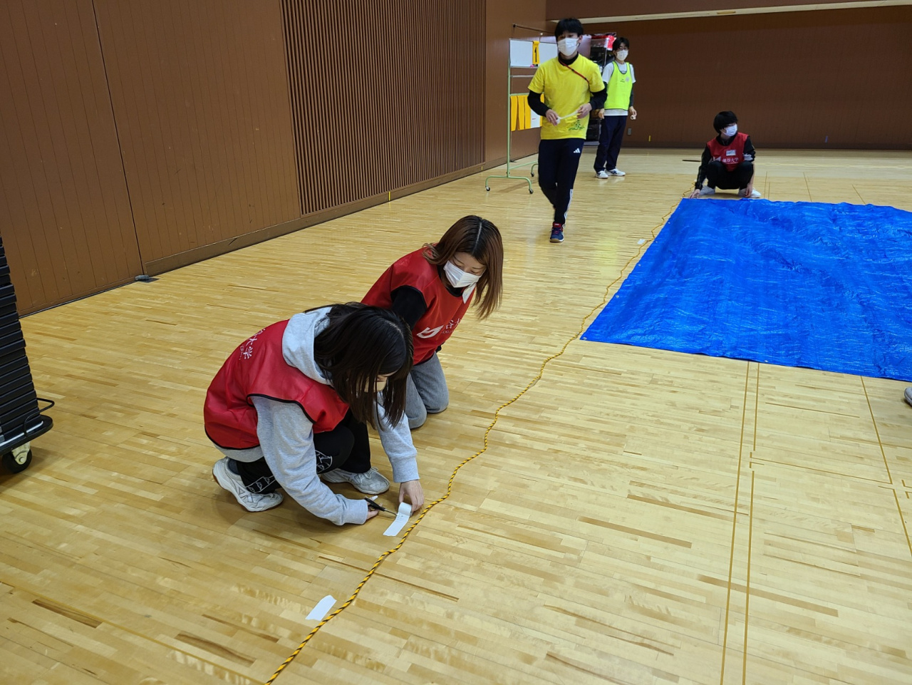 ⑦参加者の皆さんは、好きなコーナーに参加し、スタッフとして参加する学生は、競技の誘導やサポート、一緒に競技へ参加など