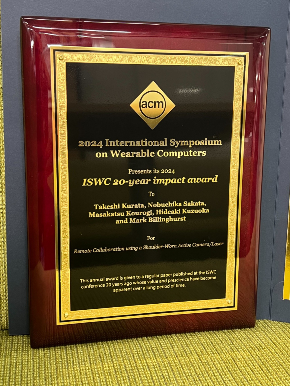 先端理工学部電子情報通信課程の酒田准教授がACM International Symposium on Wearable Computers 2024にてISWC 20-year impact awardを受賞しました。(This annual award is given to a regular paper published at the ISWC conference 20 years ago whose value and prescience have become apparent over a long period of time.)