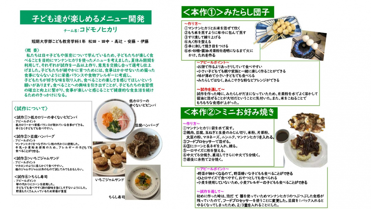 【こども教育学科】大塚食品株式会社と連携し商品「マンナンヒカリ」の新しい魅力を製品アイデアで提案【短期大学部】