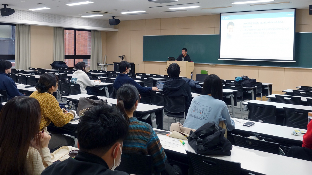 さらに、三輪社長はご自身の失敗や経験についても、学生たちに向けてカジュアルかつ率直に語ってくださいました。その場の和やかな雰囲気も相まって、講義の時間いっぱい、学生からの質問が途切れることなく続いたのが特に印象的でした。