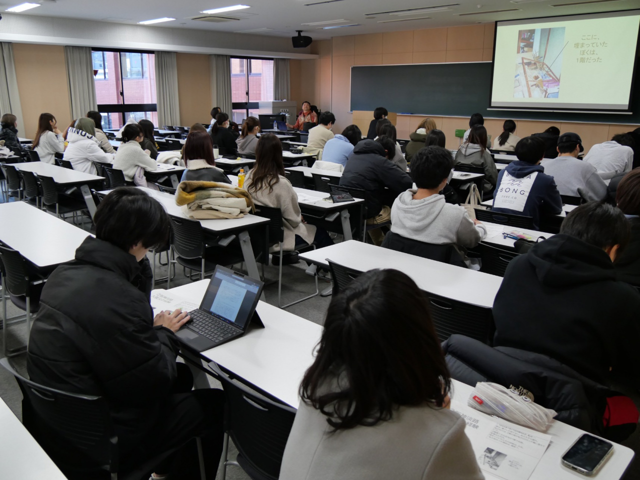 2025年1月8日(水)1時間目、ソーシャルワーク演習Ⅰ・社会福祉演習Ⅰの授業で、「人が 生まれること 生きること 生を全うすること 〜誰ひとり取り残されないまちづくり〜」というテーマで玉木幸則さんの講義がありました。