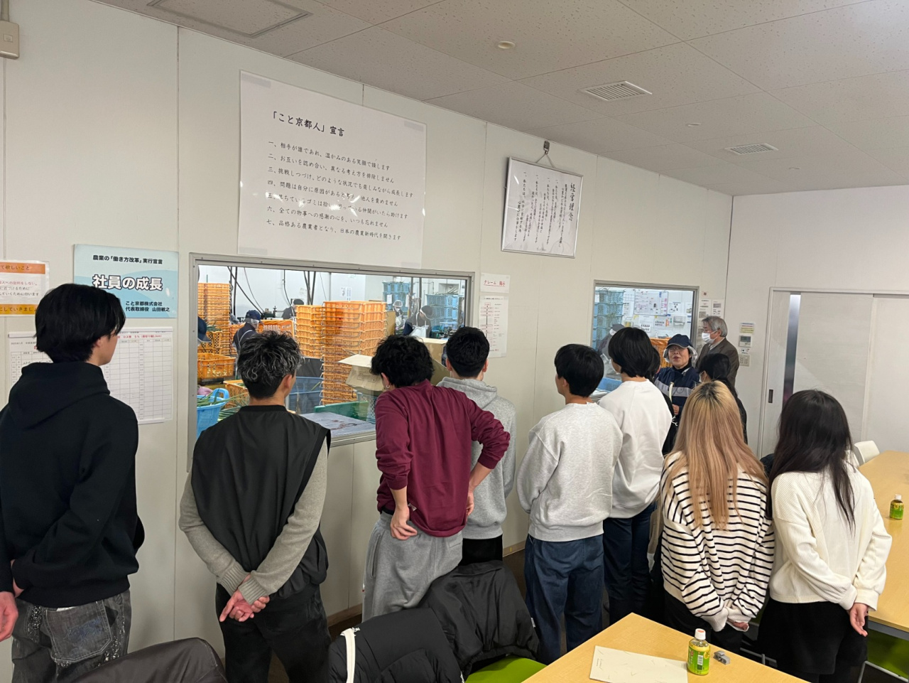 基礎演習(細川ゼミ)では今学期、2社目の企業訪問を行いました(1社目は、12月11日に訪問したHILLTOP株式会社)。今回の訪問先は、こと京都株式会社です。同社は、九条ねぎに特化し、生産・加工・販売を行う農業生産法人です。生産(1次産業)×加工(2次産業)×販売(3次産業)=6次産業化の取り組みで全国的に注目を集めています。