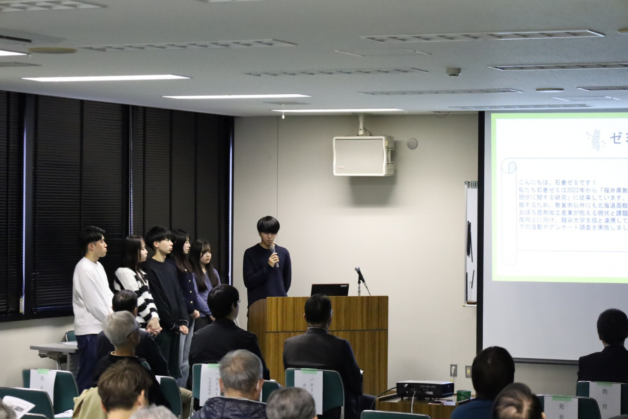 石倉ゼミが敦賀のおぼろ昆布ミニシンポジウムで調査成果を報告【政策学部】