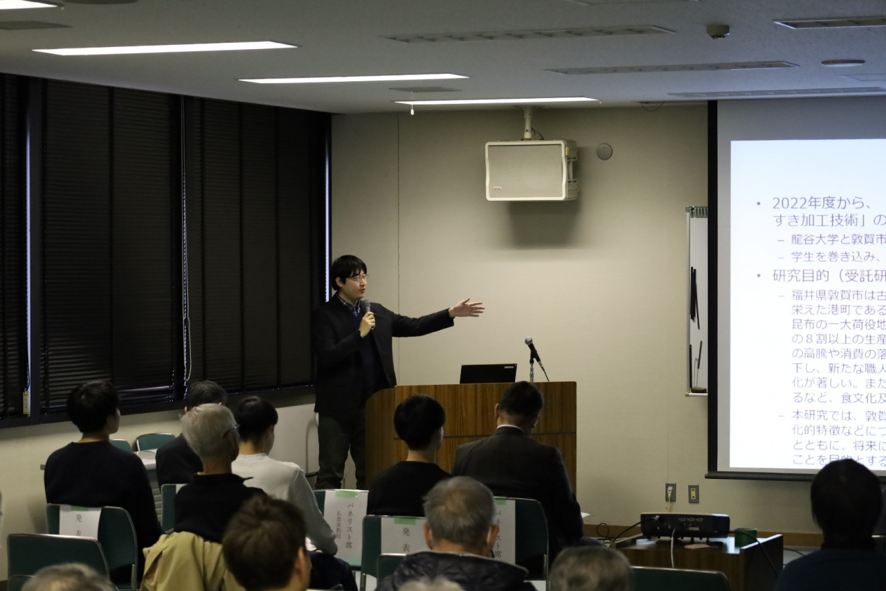 政策学部石倉ゼミが、2025年3月8日に開催された「再発見!敦賀のおぼろ昆布ミニシンポジウム」にて調査成果の報告を行いました。