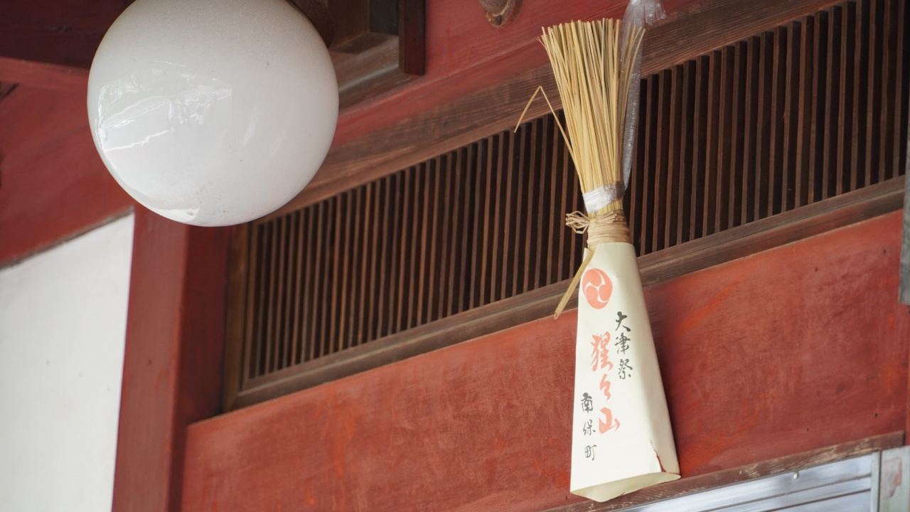 これは「大津祭」という湖国三大祭のひとつで国指定の重要無形民俗文化財に指定されているお祭りで撒かれるちまきです。玄関先につるしておくと、厄除けになると言われています。