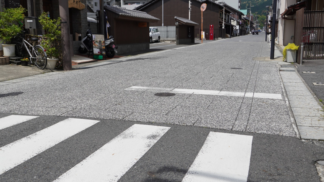 かつての宿場町の歴史を感じ取ることのできる景観に整備がなされた際、電線は地中に埋められました。