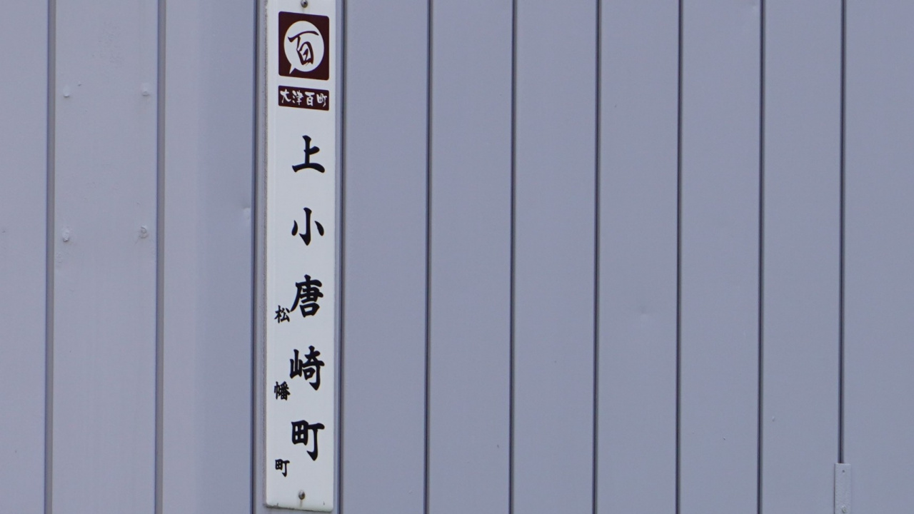 いたるところで旧町名を記す琺瑯(ほうろう)看板を見つけることができます。これは、NPO法人大津祭曳山連盟が、まちづくり活動の一環として取り付けられたものです。
