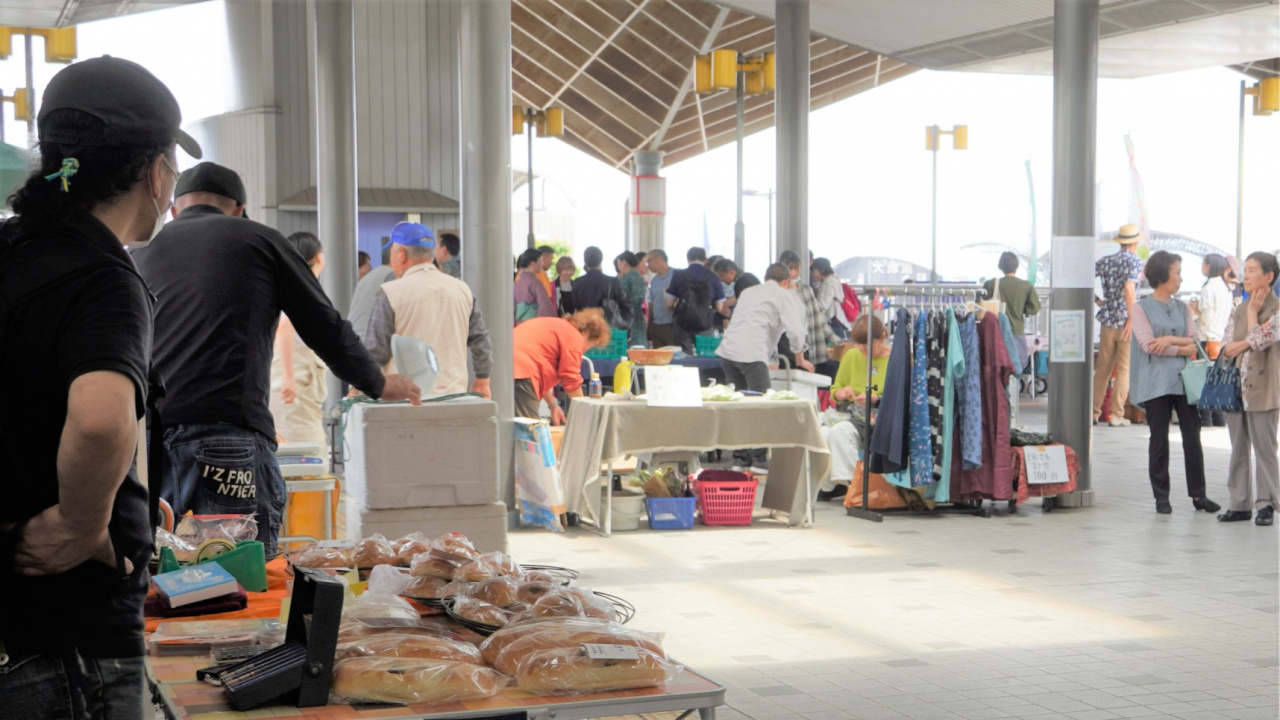 京阪の浜大津駅まで行くと「浜大津こだわり朝市」が開催されていました。