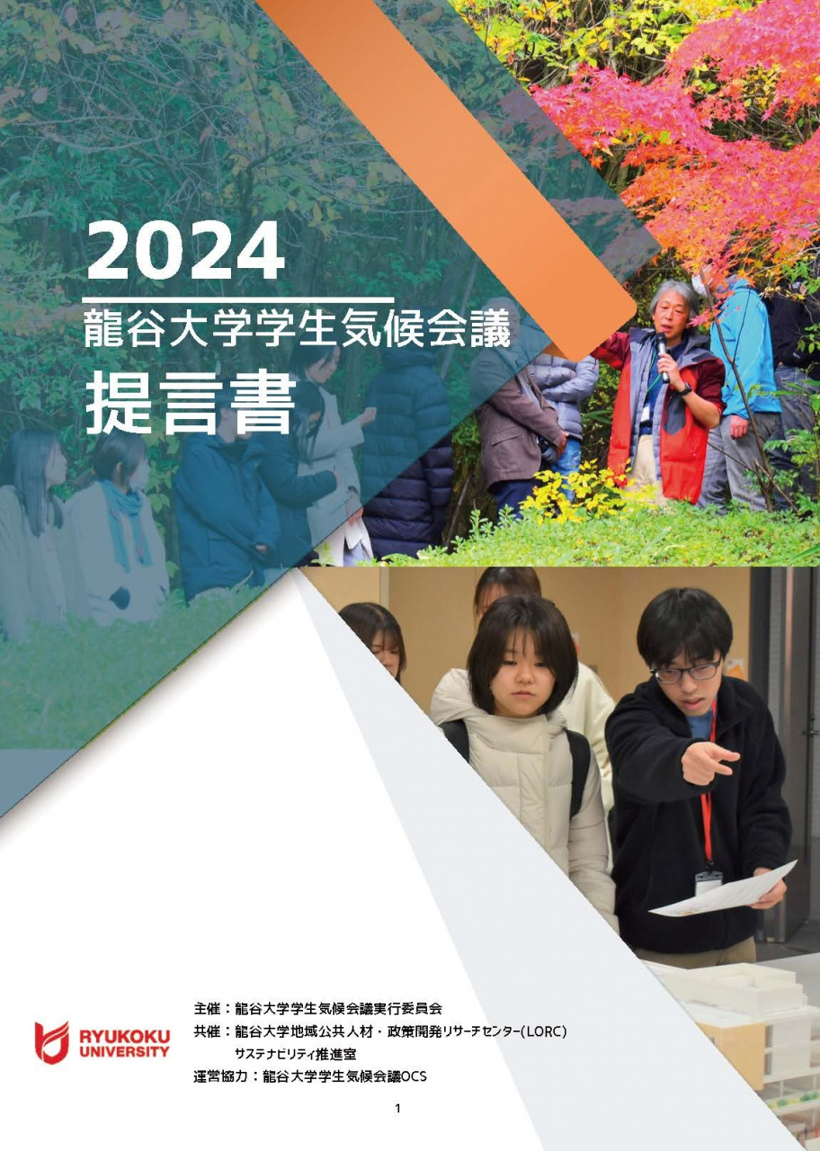 同宣言の達成に向けて学生らが話し合い、大学の気候ガバナンスへの参画をめざして「龍谷大学学生気候会議」を2021年度から開催しており、今年度では地域や大学の脱炭素化に向け、「エネルギー」「ライフスタイル」「通勤・通学」「教育」などをキーワードに学生らが議論し、成果を提言にまとめました。