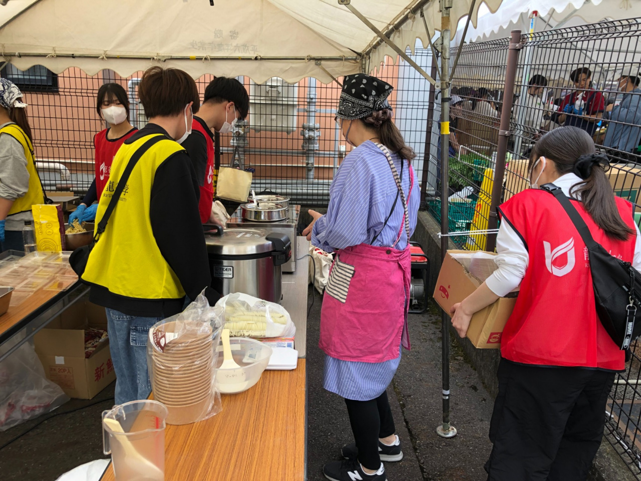 13名の体験学生がいくつかの持ち場に分かれ、前半と後半で異なる活動をしました。また、2回生以上の学生スタッフ6名もボランティアリーダーとして、体験学生をサポートしながら運営の一翼を担いました。
