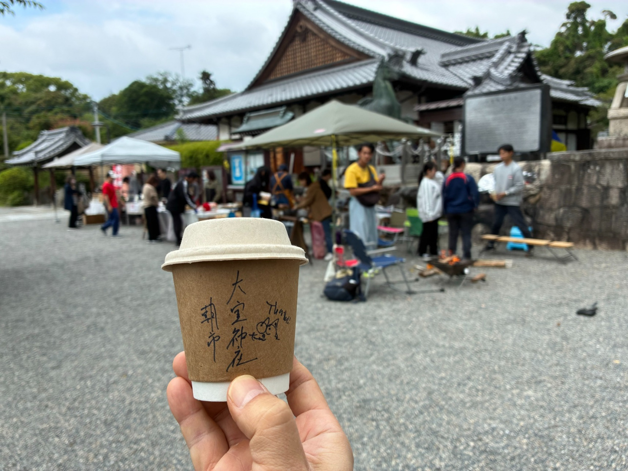 特に毎月1日に開かれる月次祭は、穢れのお祓いもおこなわれ、いつもより多くの人が集まります。日曜日だった今年の6/1の朝市は「コーヒーフェス」と銘打って、おもやとつながりのある方々がそれぞれ思いを込めたコーヒーを淹れて販売する初めての試みでした。受講生たちはコーヒーを販売に来られた方々とも交流しました。
