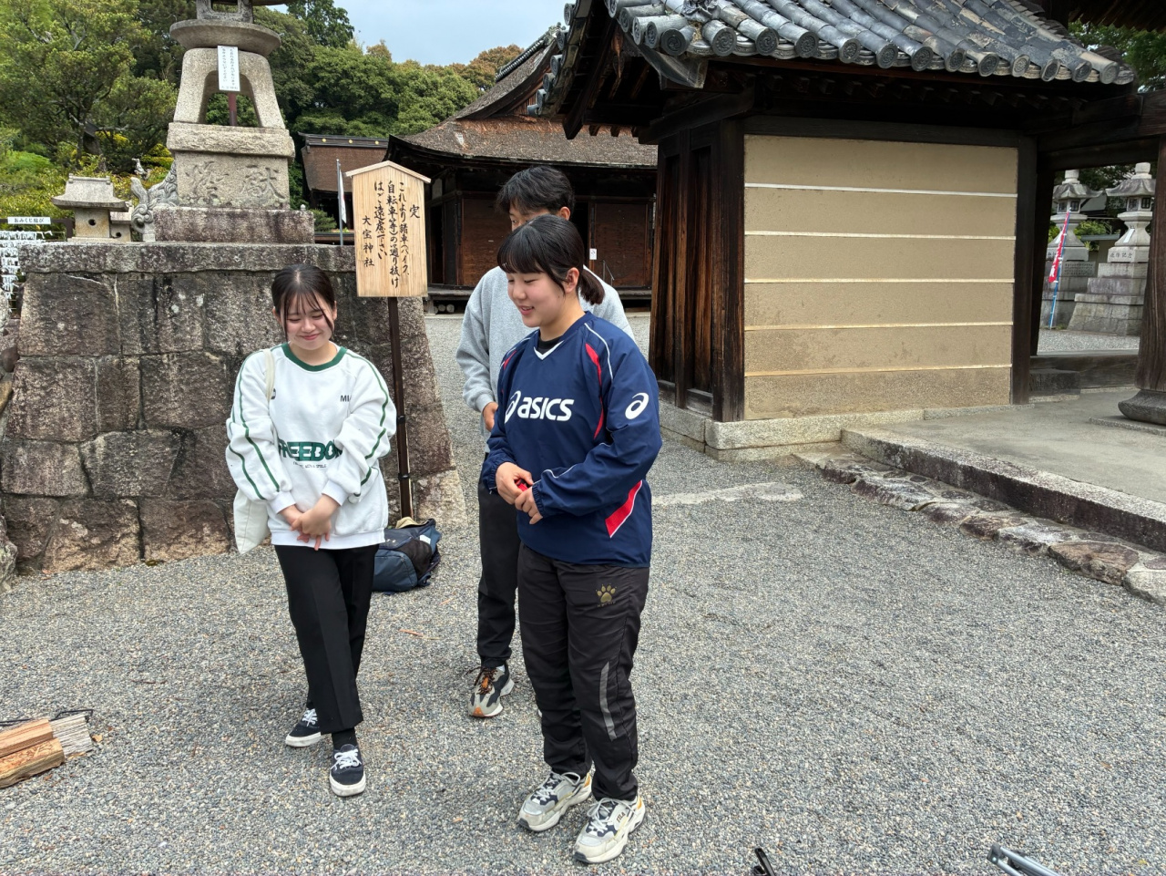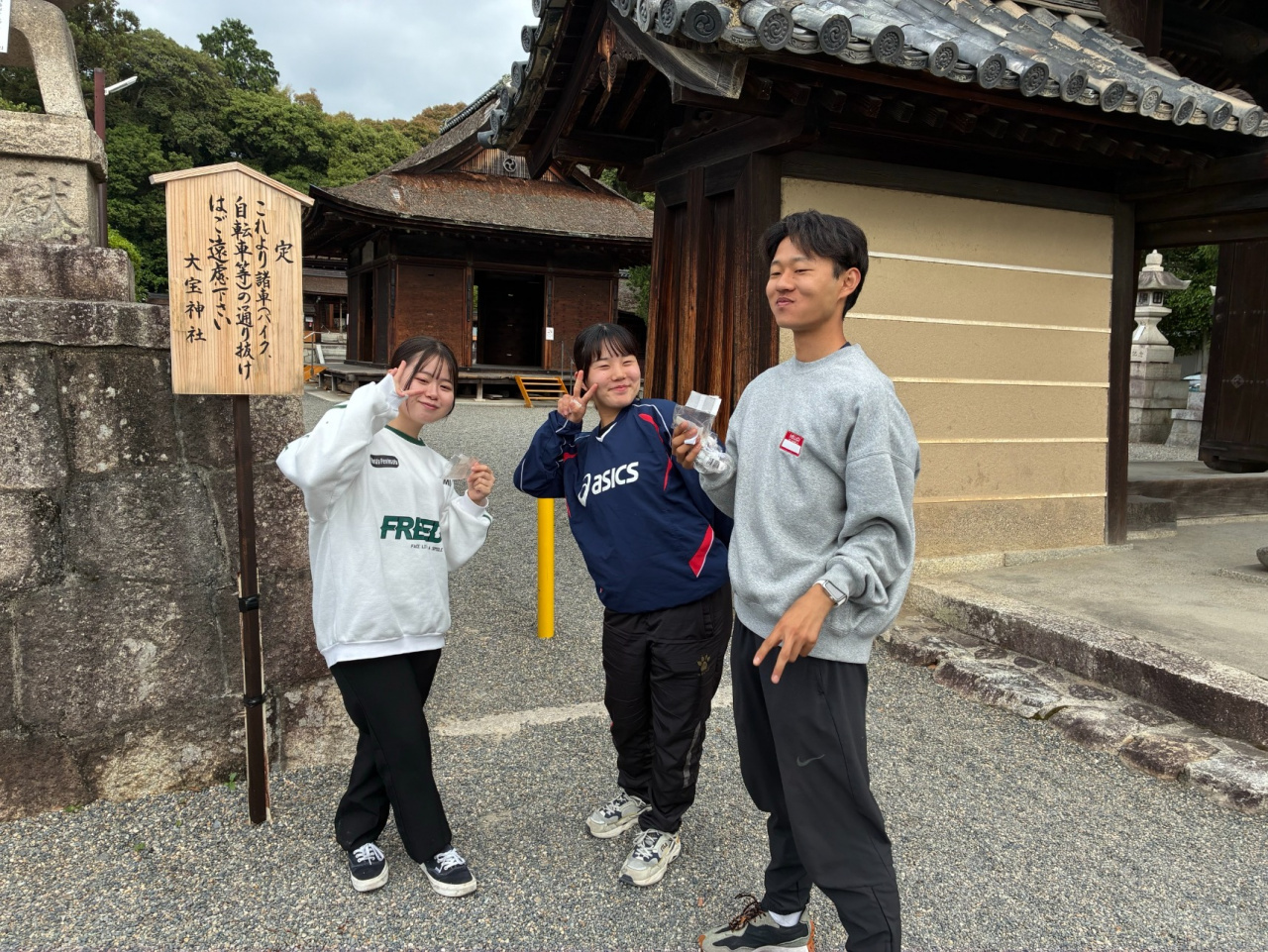 6/1(土)には、実習先の農福連携事業に取り組む「おもや」(滋賀家栗東市)の利用者さん、スタッフの方々と、地元栗東市の大宝神社(だいほうじんじゃ)の「朝市」に参加しました。