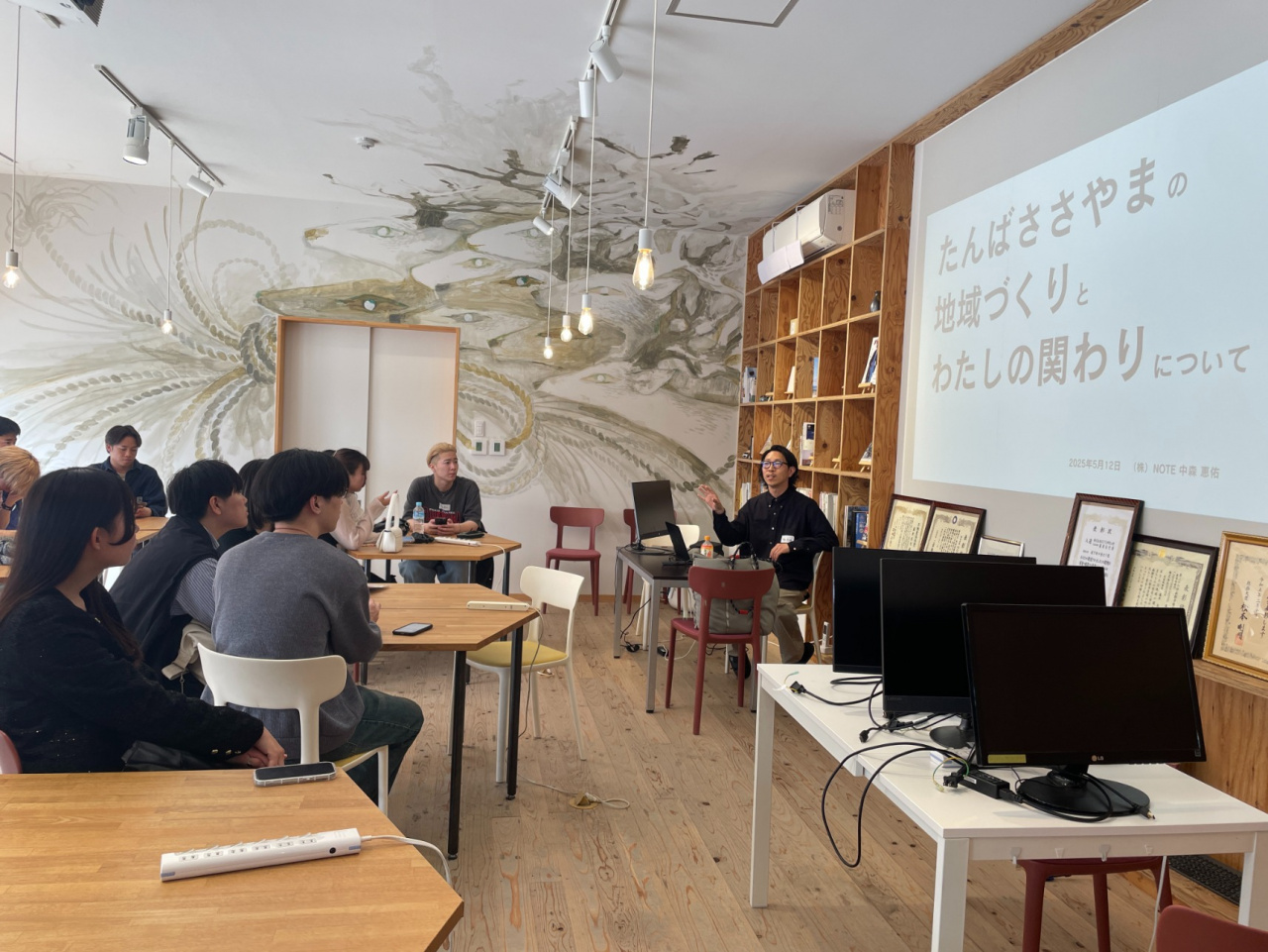 合宿では、1日目に、全国各地の地域づくりに取り組む株式会社NOTEの中森恵佑さんを訪ね、古民家再生やまちづくりの現場、市役所職員から地域づくりの担い手に転向した背景やキャリア形成についてお話を伺うとともに、デザイナー兼ゲストハウスを運営するottekeの小山達朗さんから、交流・創造・体験を生み出し、暮らしの豊かさを生み出す事業を学びました。