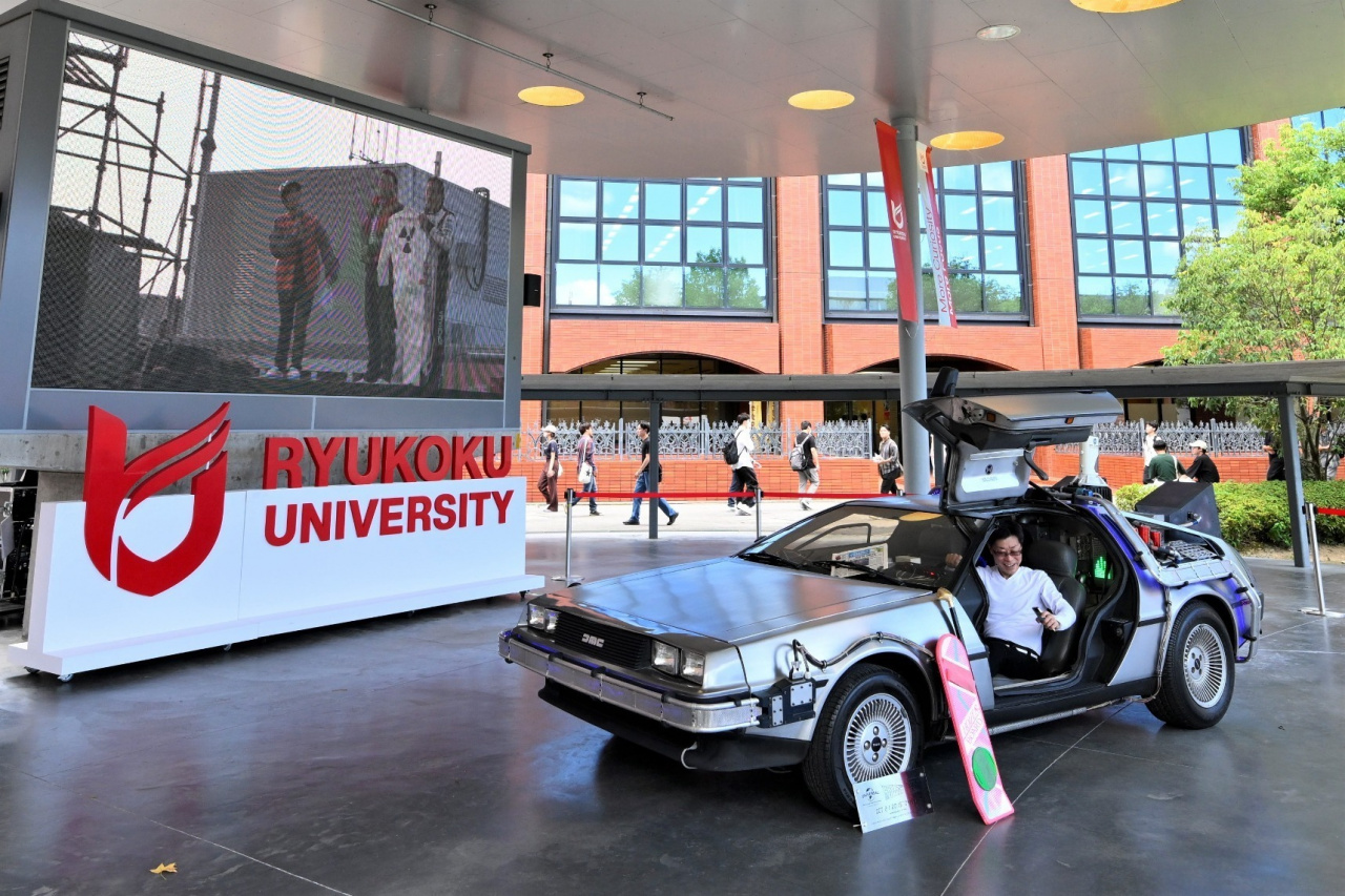 2024年9月に「龍谷大学サステナビリティDays」を開催しました。サステナビリティの実現に向け、具体的な行動を促進することを目的としたイベントです。再生燃料で走行する車型タイムマシンとしてハリウッド映画に登場した「デロリアン」 の試乗体験、サステナビリティに取り組む経営者の講演、企業や学生によるブース出展を実施し、多くの学生や教職員、地域住民の方の参加がありました。