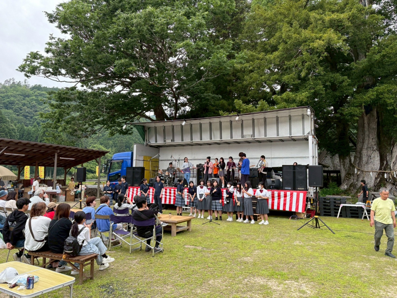 イベントの目玉である「ホタルコンサート」には、地元高校の合唱部やプロの歌手、地元バンドなど幅広い出演者が登場し、多くの来場者を魅了していました。私たち学生も手拍子や声援で盛り上げ、地域の方々や来場者とともに音楽を楽しみました。
