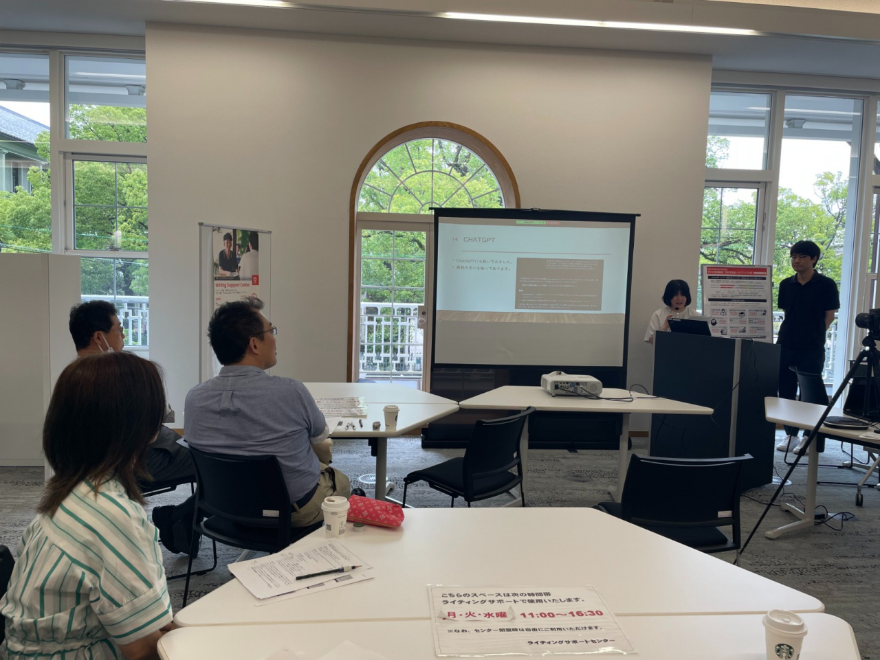 当日も、たくさんの学生さんがコモンズを利用しており、今回もそうした中で文学部コモンズカフェを開催しました。