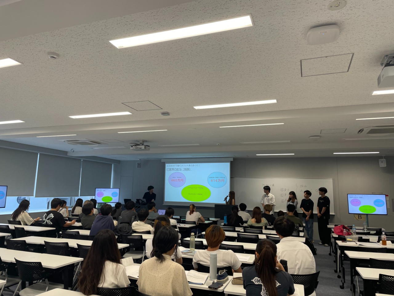 1年次生にとっては初めての本格的なプレゼンテーション経験となる学生も多く、プレゼン技術やグループでの意思決定方法なども、本科目を通じて身につけることができました。