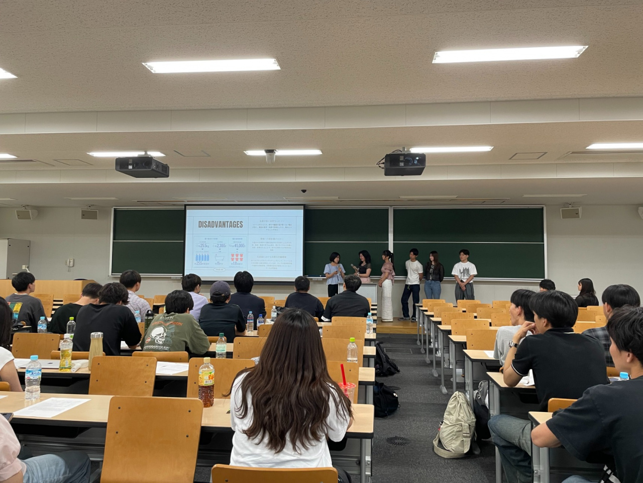 他大学や他学科のゼミとの合同発表会ということで、学生は、日ごろのゼミ活動とは一味違う緊張感を持って参加しましたが、大教室での発表を通じて自信をつけたことはもちろん、質疑応答でのやり取りや、分析手法や研究内容の異なる他ゼミの報告を聞くことで、大いに刺激を受け、大きな学びになったようです。新しい研究のアイディアや視点、発表方法の工夫など、合同発表会で得た学びを今後のゼミ活動や研究発表に活かしてくれることと思います。