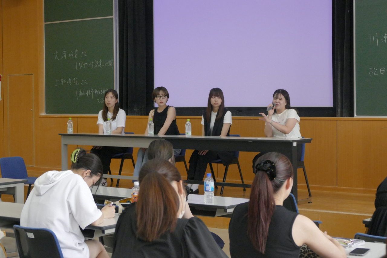 7月16日(水)2講時「保育実習指導Ⅲ」の最終授業において、入職3年目を迎え現役保育者、市役所職員として活躍する卒業生4名による特別講義を実施しました。