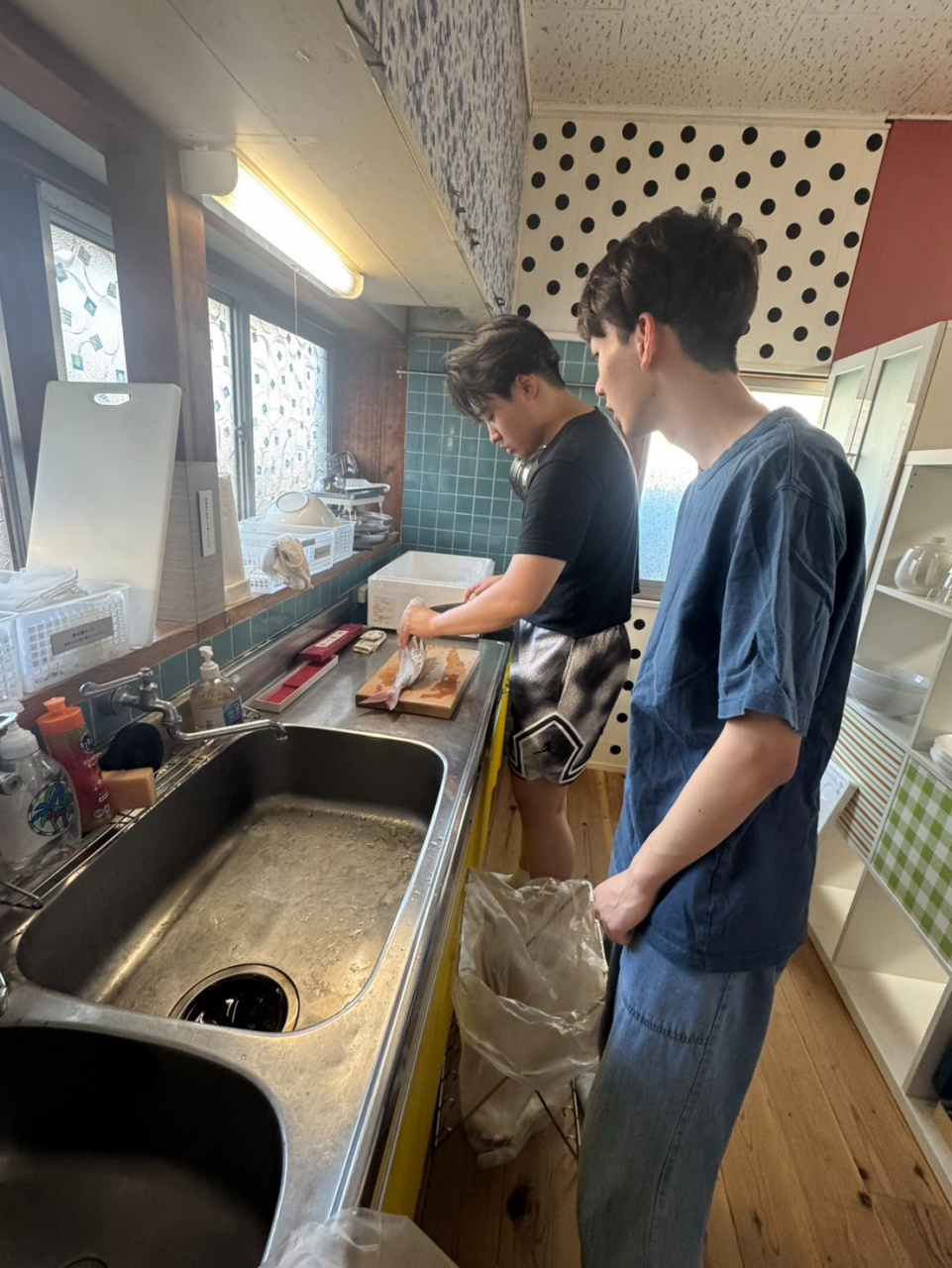 12日午後は、企業連携班と一緒に株式会社成田の福井さんから、かいぼりの時に捕獲される外来生物について話を聞きました。ブラックバスやブルーギル、ソウギョの他、亀も多く見られるとのこと。ウナギが獲れる地域もあるそうです。外来生物は捕獲後処分されるため、活用方法がないものか水産資源班では考えています。夕方はよりまち荘に移動し、由良港で獲れた鯛を捌いて晩ご飯をつくりました。